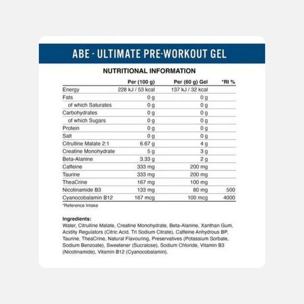 The Applied Nutrition ABE Pre-Workout Gel is your ideal partner for enhanced performance, conveniently packaged in a 60g sachet. Designed for athletes and fitness enthusiasts, this ready-to-eat gel eliminates the need for mixing, allowing you to fuel your workout wherever you are.