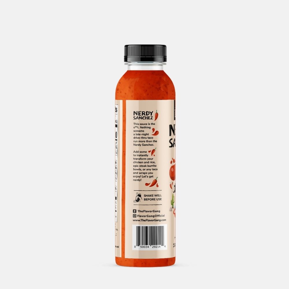 Elevate your meals with the perfect blend of sweet and spicy. This 473 ml Nerdy Sanchez Sauce adds a unique Sriracha and maple flavor to any dish.