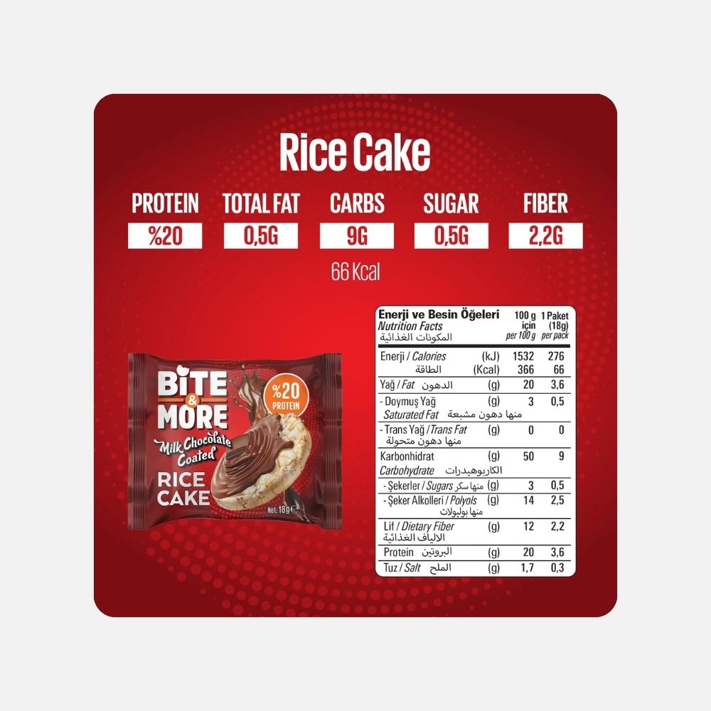 Discover a delightful snack with our Protein-Packed Rice Cake coated in smooth Belgian milk chocolate. Each 18 g serving offers a satisfying crunch along with: