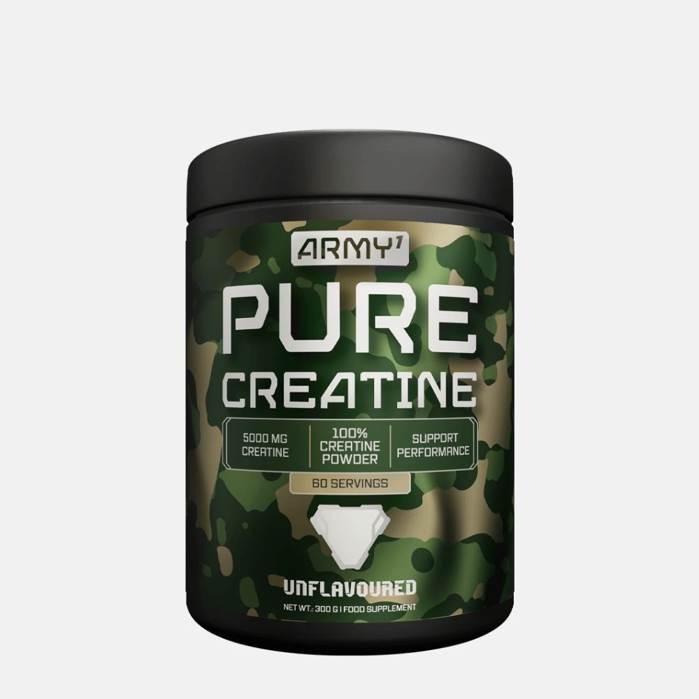 Enhance your performance with Army1 Pure Creatine Monohydrate. This unflavored powder delivers 3g of pure creatine per serving, ideal for mixing with your favorite beverages.
