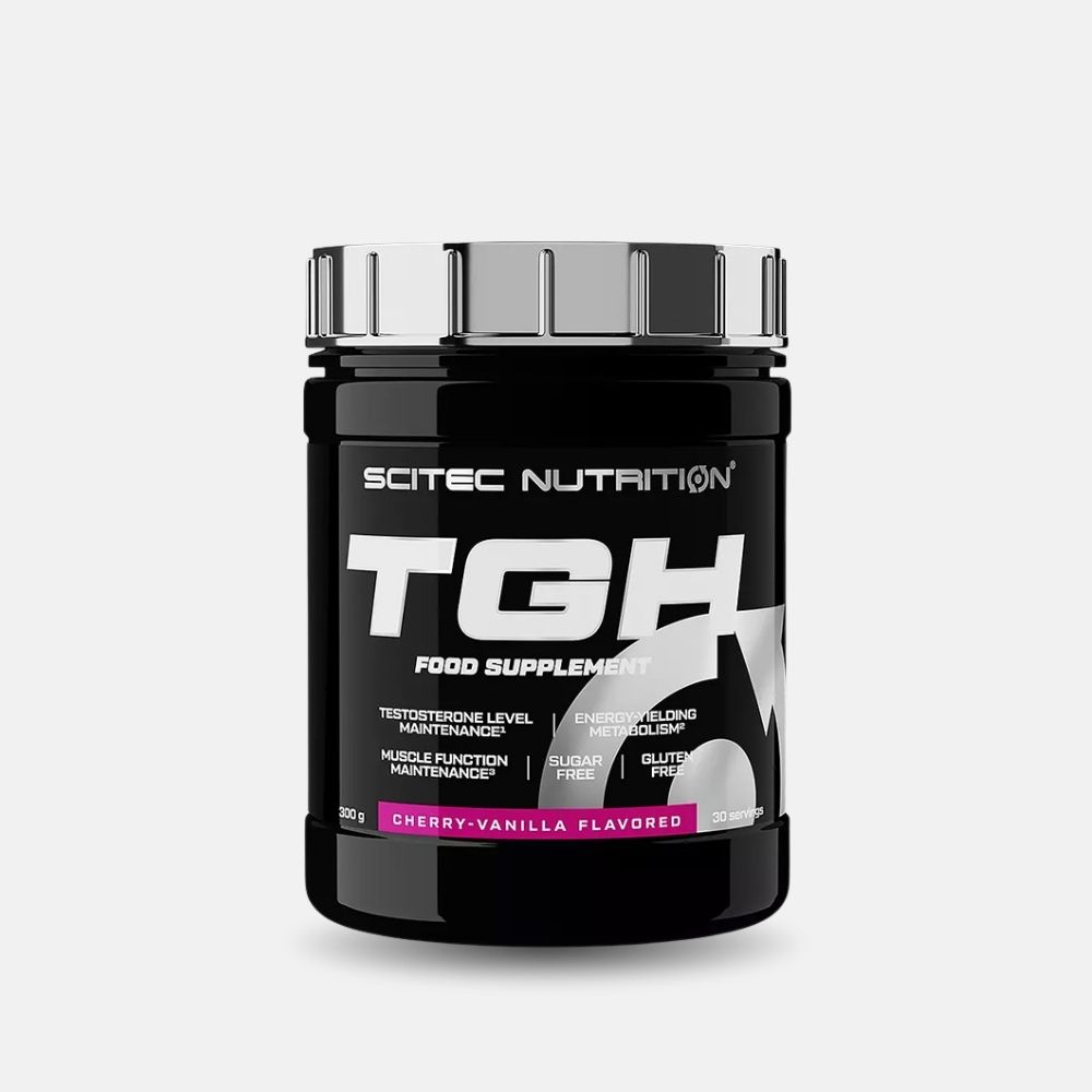 Enhance your strength and recovery with Scitec T/GH, a powdered supplement featuring D-Aspartic Acid, Amino Acids, and essential nutrients in a delicious Cherry-Vanilla flavor.