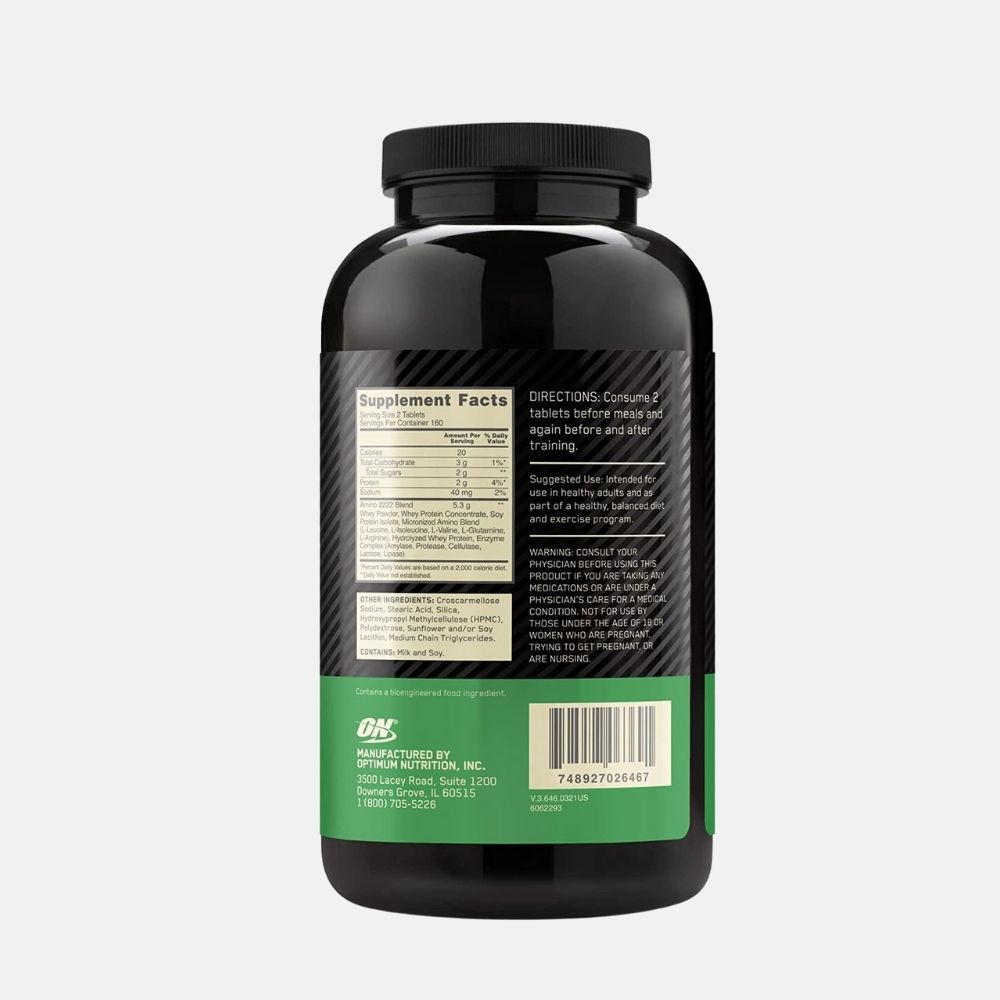 ON Superior Amino 2222 offers a robust amino acid profile, delivering 2.2 g of amino acids per 2-tablet serving. This supplement features a blend of whey and soy proteins along with micronized free-form amino acids, designed to assist in muscle repair and support overall athletic performance.