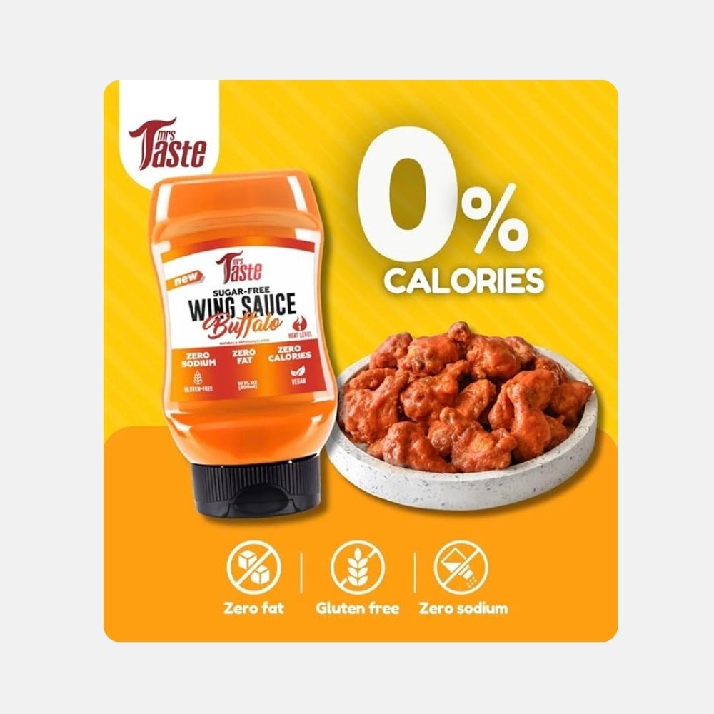 Elevate your meals with Mrs Taste Buffalo Wing Sauce, a delicious zero-calorie condiment that’s both vegan and sugar-free.